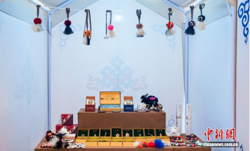 图为2025甘孜文化旅游推介会(南昌站)现场设置的甘孜非遗精品展。